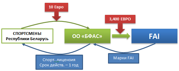 ВНИМАНИЕ: взнос за выдачу международной спортивной лицензии FAI до 1 апреля составляет 1 базовую величину, после 1 апреля - 2 базовых величины.