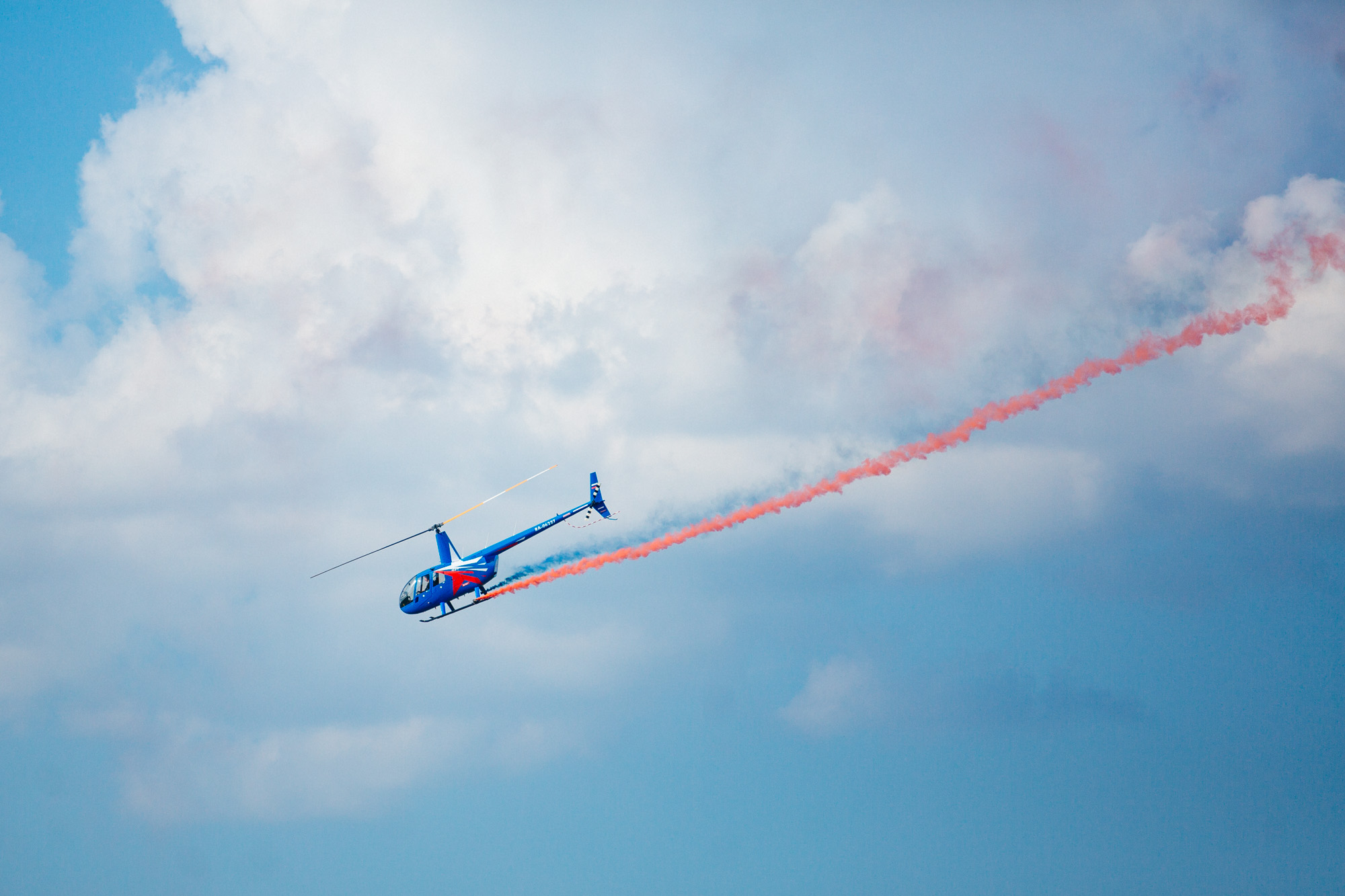 В программу показательных выступлений вошли вертолетный фристайл, воздушные бои на самолетах Як-52, высший пилотаж Як-55 и прыжки парашютистов. Пока одни зрители совершали обзорные полеты на вертолете, другие слушали рассказы Александра Центера о его планах пролететь вокруг света на легкомоторном самолете и Антона Быстрова, о том как стать парашютистом.