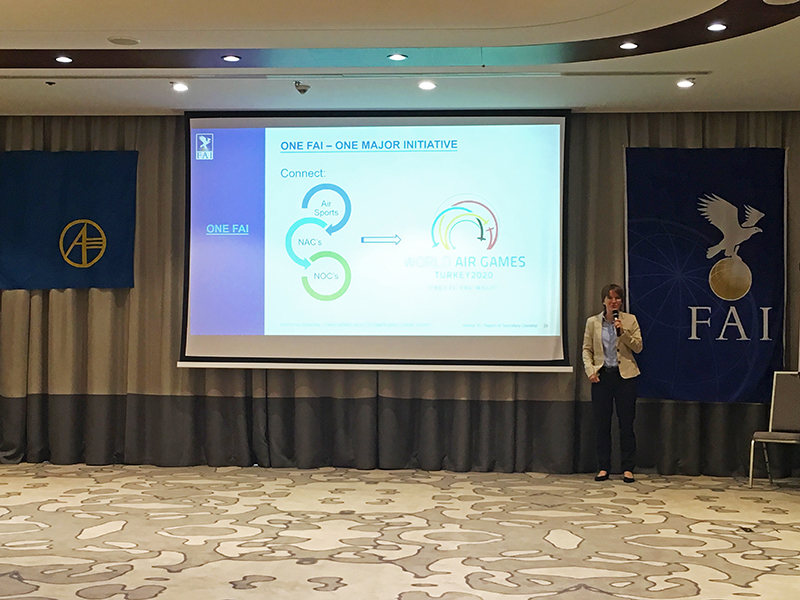 В своей краткой презентации Сюзан рассказала о спортивном сезоне 2018 года, статистике количества соревнований и участников, Всемирных Авиационных Играх 2020.