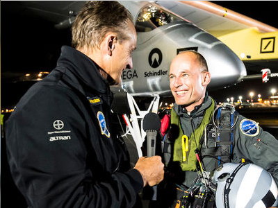 "Я уверен, что у нас особенный аэроплан и он перенесет нас через океаны", - сказал перед взлетом Боршберг в интервью Би-би-си.