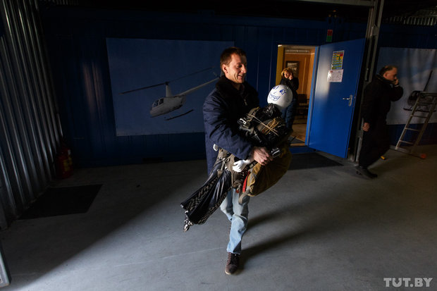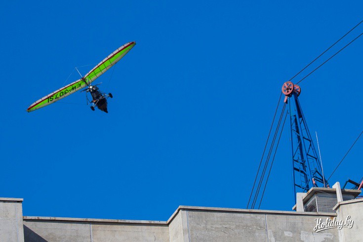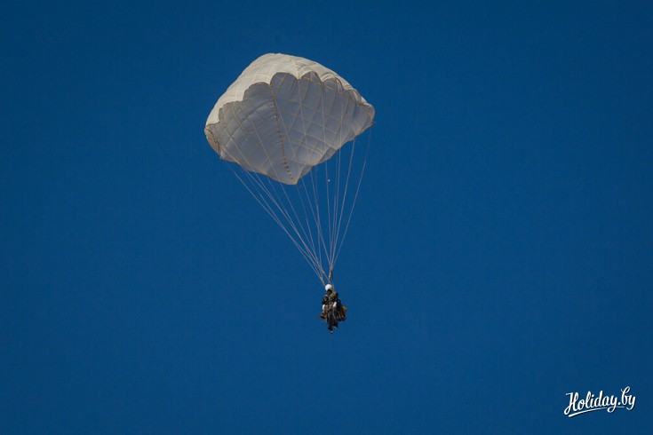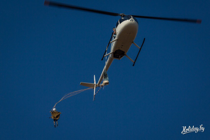 Испытания парашюта Леонардо да Винчи проводились за всю историю изобретения всего дважды: в Великобринаии и в Англии. Белорусские организаторы не решились отправлять на эксперимент живого человека. Миссия проверки изобретения была возложена на хрупкие плечи небольшого манекена весом в 20 килограмм. Сам парашют, на создание которого ушло 4 дня, все-таки не стал абсолютной копией задумки Леонардо. Его значительно уменьшили и сделали не из парусной ткани, как задумывал автор, а из современного парашютного материала (использовалась капроновая ткань списанного десантного парашюта Д-5). Зато пирамидальные пропорции были соблюдены.