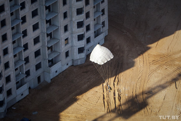 Выставка «Изобретения да Винчи» в Минске произвела настоящий фурор. Только за первый день показа ее посетило около 2 000 человек. В музейных залах расположилось немало творений великого изобретателя, но в основном они статичны. Работу лишь нескольких проектов можно проверить собственноручно, самое интересное все же остается за кадром. Компания «А-100 Девелопмент» при сотрудничестве с PR-студией Sette решили провести интересный эксперимент, а именно — создать по эскизам Леонардо пирамидальный парашют и испытать его в действии.