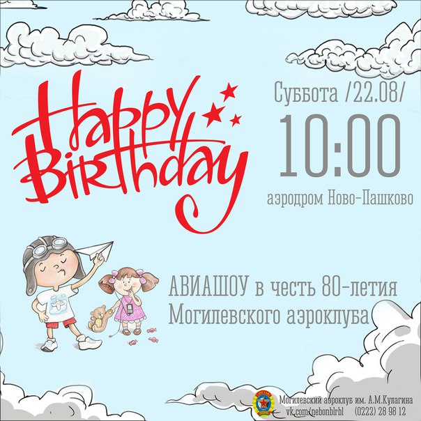 Это лето можно смело назвать «авиационным». И если до этого воздушными праздниками баловали жителей города Минска, то завтра, 22 августа, встречаемся в Могилёве, на аэродроме Ново-Пашково. Начало в 10.00. Поэтому старайтесь не опаздывать, если не хотите пропустить все самое интересное!
