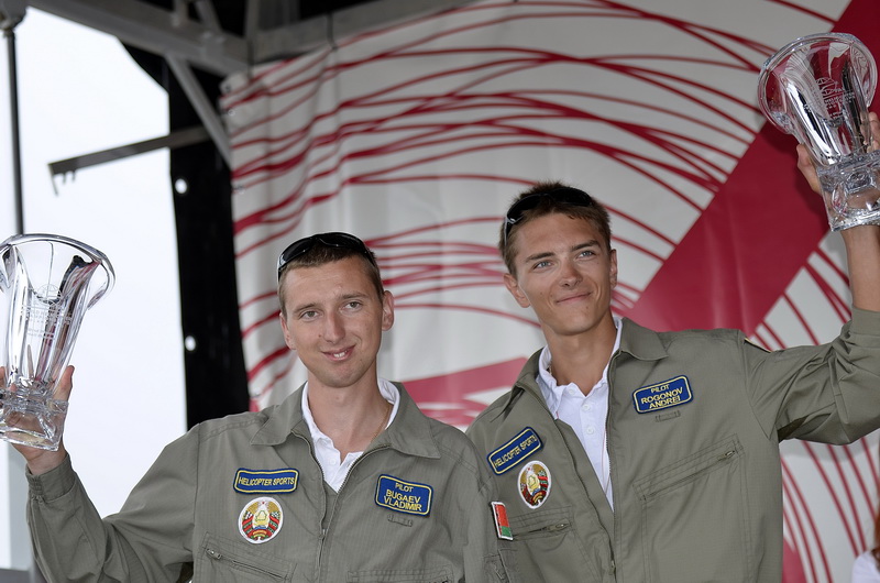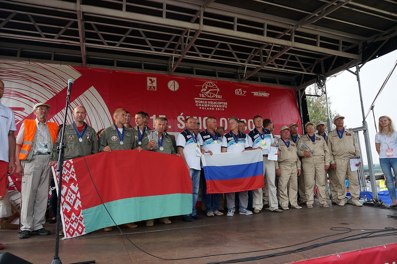В абсолютном зачете чемпионами мира стал экипаж из России - Сотников Максим, Пуоджюкас Олег. Это была очень долгожданная для них награда и теперь этот экипаж является одним из самых титулованных в мире. Особенно интересно то, что новоиспеченный чемпион мира Пуоджюкас Олег долгое время работал и в Витебском, и в Минском аэроклубе летчиком-инструктором, был первым тренером по вертолетному спорту Мочанского Алексея и Данченко Антона. Кстати, именно в таком составе экипаж Минского аэроклуба стал лучшим экипажем сборной Беларуси, заняв 9-ое место в абсолютном зачете.
