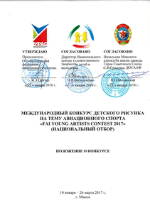 Белорусская федерация авиационного спорта (БФАС) в этом году впервые проводит национальный отбор среди юных художников. Лучшие 9 работ отправятся в штаб-квартиру FAI в город Лозанна, Швейцария, чтобы побороться за победу в международном финале.