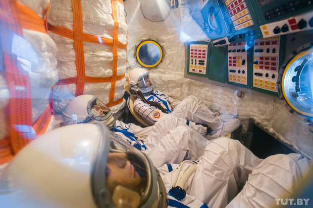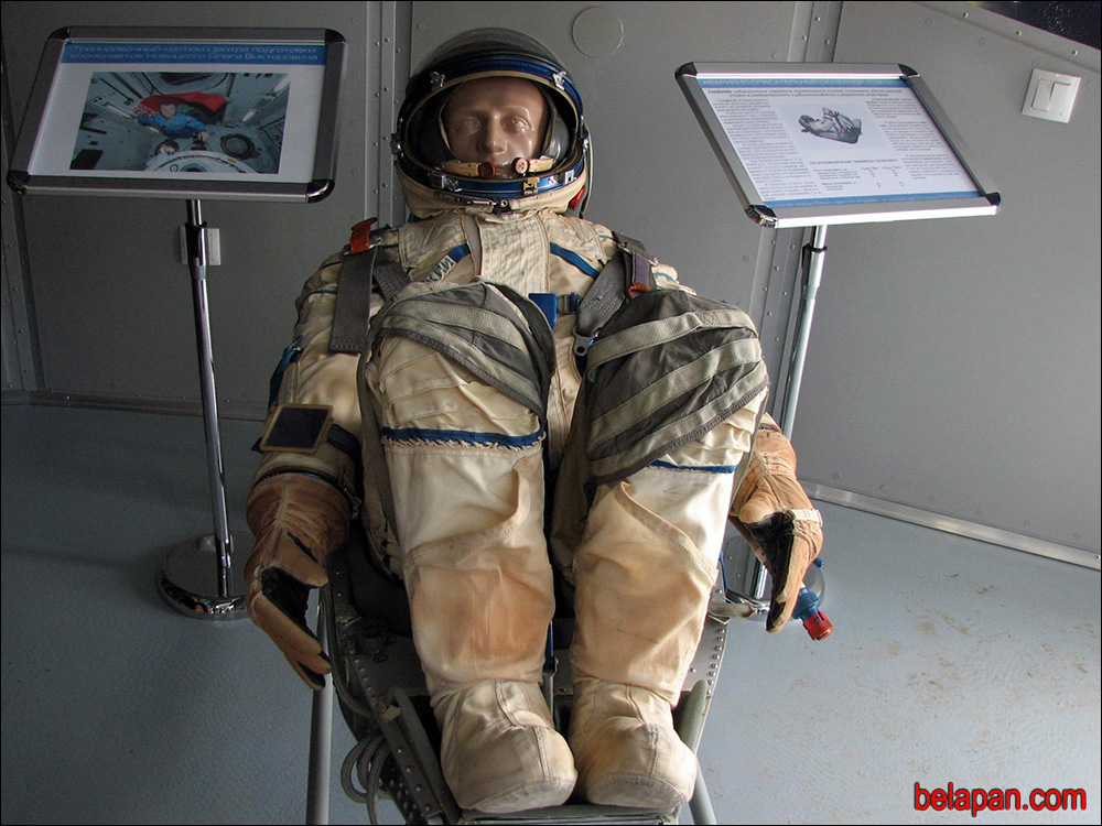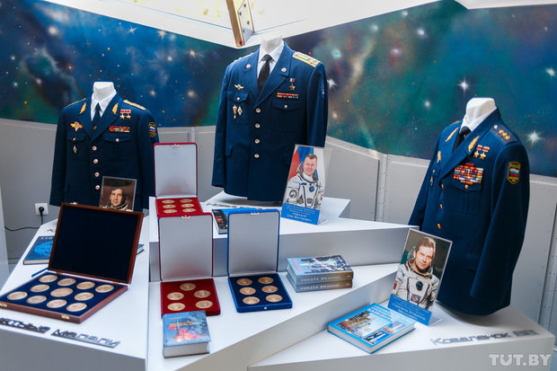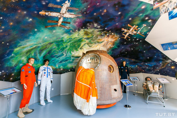 В павильоне представлены уникальные экспонаты, среди которых ложемент и скафандр первого белорусского космонавта Петра Климука, костюм космонавта Олега Новицкого, спускаемый аппарат корабля «Союз», тюбики с едой для условий невесомости и специальные костюмы экипажа международной космической станции.