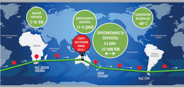 Полет проходит на высоте 5-10 километров, предполагаемая продолжительность — около двух недель.